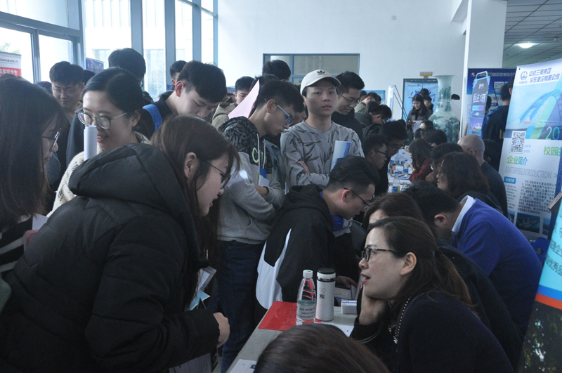 本次招聘会共吸引了包括中铁工程装备集团钢结构有限公司、中国十九冶集团有限公司、中铁三局集团华东建设有限公司等企业在内的将近60家公司前来招聘。上午,恒大金碧物业有限公司、上海链家、利元控股集团有限公司等3家单位进行了宣讲,介绍了各自公司的概况及毕业生进入公司后的发展空间,鼓励2019届毕业生充分抓住大学期间的最后时光全面提升自己以从容应对目前相对严峻的就业形势。宣讲会结束后,同学们踊跃向公司招聘方递交了求职简历,并就求职就业问题和招聘方进行了互动交流。