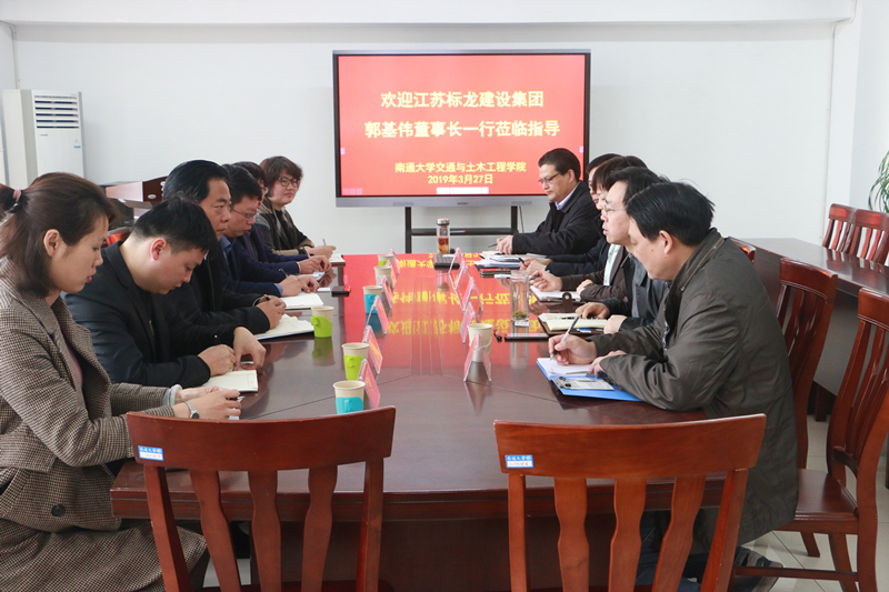 3月27日上午,江苏标龙建设集团有限公司董事长郭基伟一行来yl23455永利集团洽谈校企合作项目。院领导班子成员、土木工程系主任及部分教师参加了座谈。