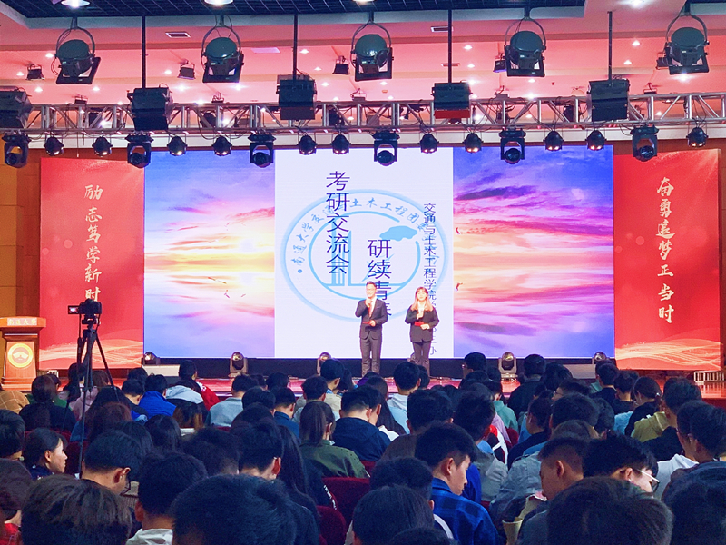 在第一部分的考研经验交流会上,6位考取研究生的优秀毕业生们依次上台,分别从不同角度分享了各自的考研经验、心路历程和感悟收获,为大家提供了各种高效的学习方法,使低年级的学生更深入地了解了考研前期的目标选定、复习计划的合理制定、复习资源的充分利用、复习阶段所遇到的各种问题及解决方法,也使他们对考研有了更加清晰的认识和明确的目标,表示会脚踏实地,勤奋学习,砥砺前行,让自己飞得更高、飞得更远。