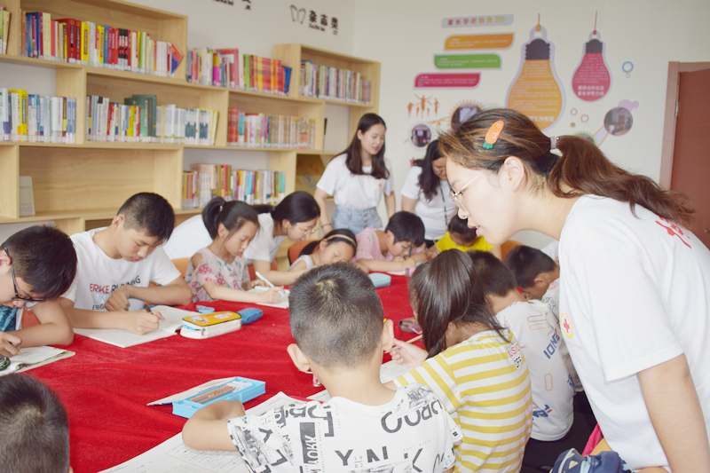 启动仪式之后,志愿者们很快到达活动地点——崇川区新桥北村公共服务中心,并在社区工作人员的帮助下,迅速开展了一系列准备工作。当天下午两点,社区的孩子们来到活动现场,为活动现场增添了无限生机,志愿者们也与他们展开了亲切的交流,并开展了学习、心理等方面的辅导,孩子们纯真的笑意、热情的讨论、天马行空的思维,让现场的气氛变得鲜活与炙热,让志愿者们感到前所未有的轻松与愉悦,而志愿者们耐心细致的辅导也让孩子们感受到了不一样的关怀和暖心。活动结束后,志愿者们给孩子们送上了精心准备的精美礼品。