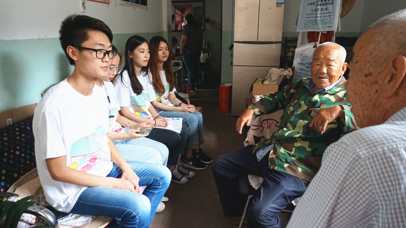 炎炎夏日,释放青春,感悟情怀。7月16日,yl23455永利集团“多背一公斤”江海志愿者服务团队一行人,怀着崇敬而又好奇的心情,来到山西太原古交市,与张双喜和张勇寿两位已达81岁高龄的抗战老战士零距离接触,与他们促膝交谈,聆听他们抗战的感人故事,感悟动人的家国情怀。