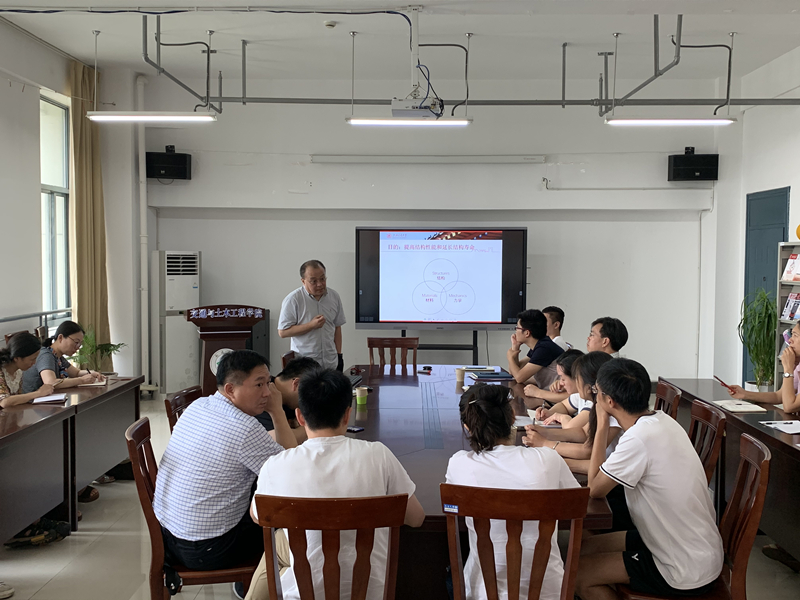 乔丕忠教授首先介绍了高性能混凝土的预制、冲击、节点等方面的处理技术,他还结合绿色智能建筑材料的发展前景,从经济型、高融性、智能型和力学性能方面分析了新型FPR(纤维增强聚合物)、智能骨料、智能检测系统在智能建筑上的应用,分享了自己首次提出的双层梁剪切和界面变形理论以及他在材料和结构的破坏、健康检测及加固等问题上开展的具有深远影响的独创性研究。最后乔教授还应学院要求对科研团队的整合和建设提出了中肯意见。