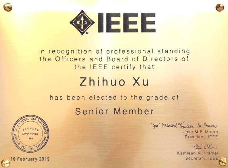 经过严格的筛选与评审,经国际电气和电子工程师协会(IEEE,全称是Institute of Electrical and Electronics Engineers)主席José M. F. Moura博士签署,yl23455永利集团智能交通系许致火博士当选为IEEE高级会员。