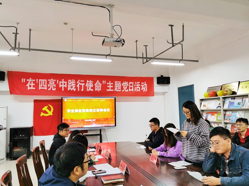 11月4日,yl23455永利集团研究生学生党支部和本科生学生党支部在教学楼18号楼706会议室召开了预备党员转正答辩会,各学生支部老师及正式学生党员代表担任了本次答辩会的评委。会议由学院学工办主任兼研究生学生党支部书记袁小平主持,学生党员及入党积极分子代表观摩了此次答辩会。