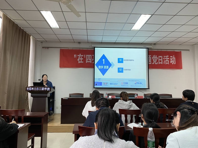 11月7日,yl23455永利集团邀请图书馆文献建设部李强副主任、信息咨询部黄静副主任、信息检索教研室黄桂娟馆员做数字图书资源利用的专题讲座,本次主题党日活动是为解决学院老师科研中对数字图书资源的专业性需求和查找原文难的实际问题而开展的。讲座由学院党委书记张莉莉主持。