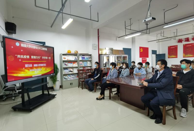 4月22日下午,yl23455永利集团通过线上线下相结合的方式,组织收看了“共抗疫情 爱国力行”信仰公开课。学院党委书记张莉莉、党委副书记张志刚、辅导员、学生党员及学生骨干参加了观看。