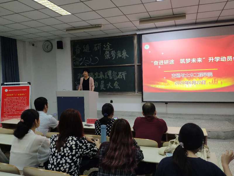 6月27日晚,yl23455永利集团召开2018级土木工程和工程管理专业“奋进研途筑梦未来”升学动员会。学院党委书记张莉莉、党委副书记兼副院长张志刚、院长助理兼工程管理教研室主任陈敏、交通工程系专业教师沈强儒博士以及辅导员、班主任和全体2018级土木工程、工程管理专业学生参与会议。