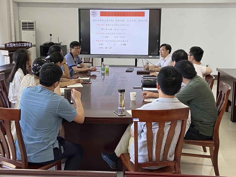 报告由施佺院长主持,力学教研室全体老师参加,会后,姚教授和老师们就学术前沿问题进行了深入探讨和交流。