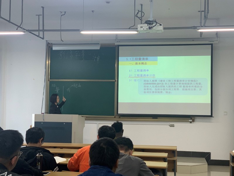 陈敏老师的具体授课内容为工程量清单计价,包括工程量清单的基本概念,承发包双方的风险分担原则,分部分项工程量清单的编制要点等内容。陈敏副教授教态自然大方,语调抑扬顿挫,逻辑思路清晰,内容安排详略得当,重点难点深入浅出,观摩的青年教师和听课学生听得津津有味。40分钟的课程环节紧凑、脉络清晰,取得了良好的教学示范效果。