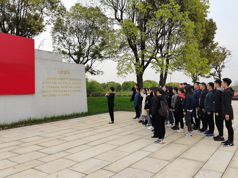 在庄严肃穆的渡江战役纪念碑前,全体党员奏唱国歌、致敬革命先烈,学生党员代表向革命烈士敬献花篮,学院党委书记张莉莉和党委副书记、副院长张志刚为花篮整理缎带,全体党员肃立鞠躬默哀,深切缅怀革命先烈的丰功伟绩,表达了对革命先烈的崇高敬意。随后,在渡江战役纪念碑前,全体师生党员面向鲜红的党旗,在学院党委书记张莉莉的带领下,庄严举起右手,握拳宣誓,重温入党誓词,牢记初心使命。