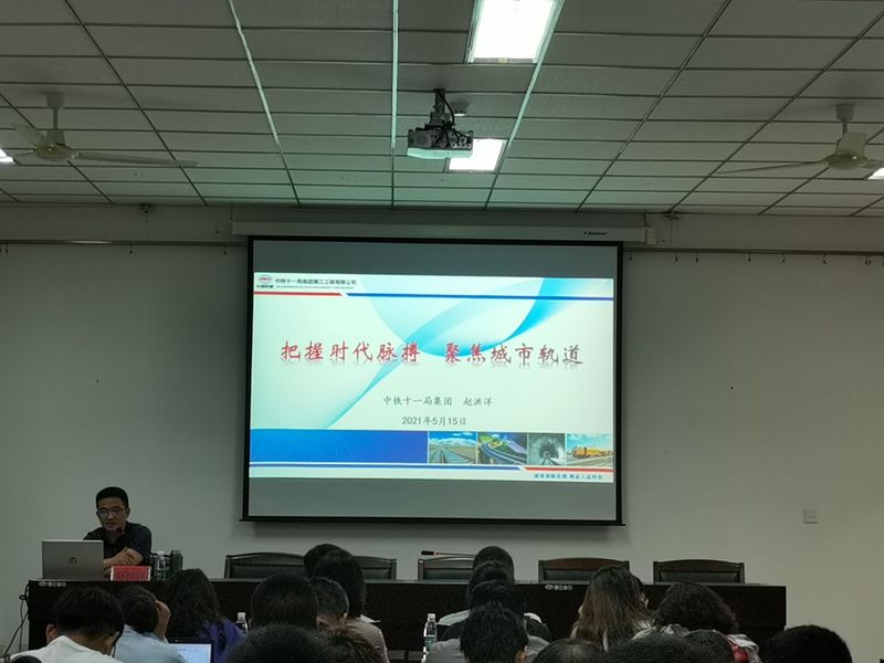 5月15日上午,中铁十一局集团华东建设有限公司副总经理赵洪洋率队莅临我校,作《把握时代脉搏,聚焦城市轨道》专题讲座,yl23455永利集团80余名师生参加。