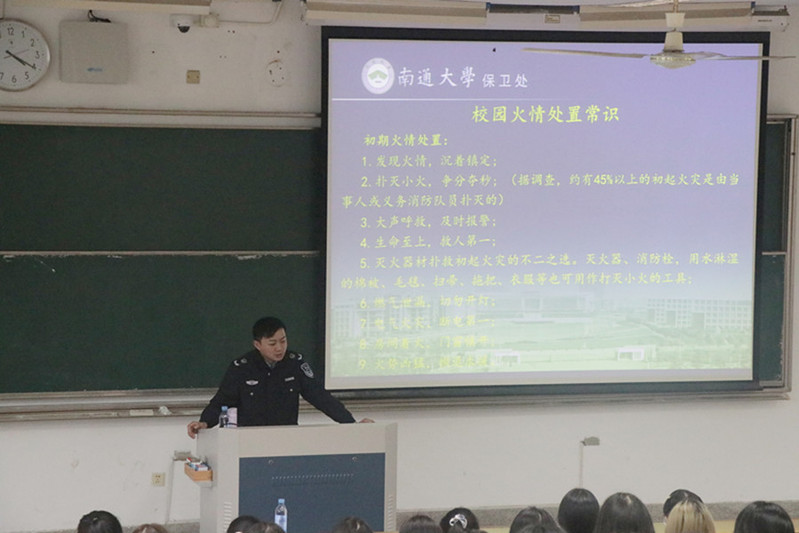 学校保卫处主任陆建锋从大学生“五防”“一规范”的六个方面入手,通过具体、鲜活的案例,真实呈现了常见的系列安全问题,并通过丰富的视频,提醒学生要提高安全防范意识和防诈骗意识,增强辨别和自我保护能力。最后,他还针对大学生网络行为规范提出了具体建议,鼓励同学们要洁身自好,多走出宿舍,多参加学校和社团活动,促进自身的健康和全面发展。