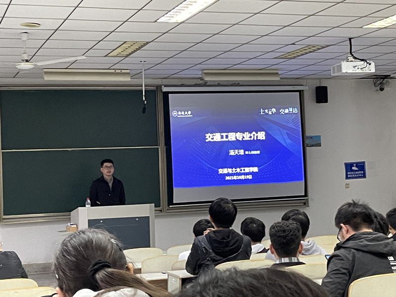 交通工程系主任汤天培博士就交通工程学科特征、教学教研团队、教学成果、人才培养计划和课程设置,以及未来升学和就业等方面进行了详细介绍,并对同学表达了美好祝愿,期望大家不负青春,不负韶华。