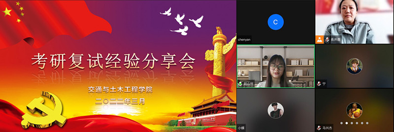 会上,学院21届毕业生、大连海事大学研究生陆心竹结合自身的考研经历,分享了参加调剂和复试的经验,强调了调整心态的重要性。她鼓励大家要做好充分的准备,拓宽信息渠道,密切关注调剂信息,积极主动联系调剂学校,把握机会顺利“上岸”。智能交通系王晗老师从复试“考官”的角度向考生介绍了复试的流程及注意事项,并分析了复试各个环节需要关注的细节,强调在复试过程中要结合自身实际,向导师展示自己的专业特长。土木工程系钱王苹老师分享了自己参加复试的经历,提醒考生要提前了解相关院校及专业导师的情况,提升复试的自信心。工程管理系邵秋虎老师重点向考生介绍了境外留学项目,进一步拓宽了学生继续深造的发展路径。学院办公室付莉莉老师结合研究生招生工作,重点强调了复试前准备工作的重要性,提醒考生注意把握时间节点,不要留有遗憾。学工办孙晓敏老师分析了近三年学院考研情况,建议考生按照分数段和排名制定调剂和复试计划。