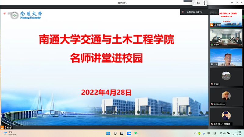 4月29日晚,教育部高等学校土木工程专业教学指导分委员会委员、河海大学教务处处长沈扬教授,应邀为yl23455永利集团师生在线作了题为“改变世界的岩土工程”的学术报告。报告会由yl23455永利集团院长施佺主持。