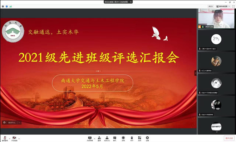 5月18日下午,yl23455永利集团举行2021级先进班级线上评选汇报会。学院党委副书记、副院长陈妍出席会议。