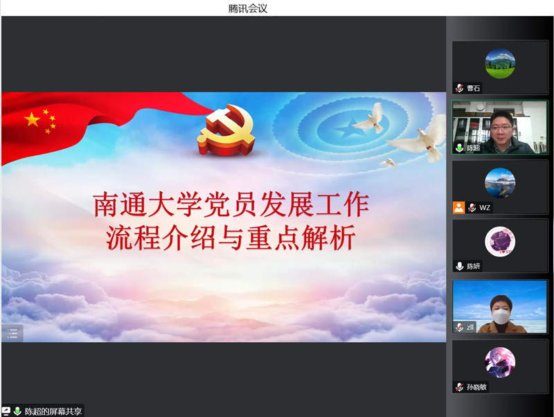 陈超结合《南通大学发展党员工作实施细则》,对申请入党条件、入党积极分子的确定和培养、发展对象的确定和考察、预备党员的接收、预备党员的教育考察和转正等内容作了详细说明。结合学校党员发展工作实际情况,他重点讲解了党员发展基本程序、要求、时间节点以及发展过程中涉及的相关材料,明确了党员发展工作的各项要求。