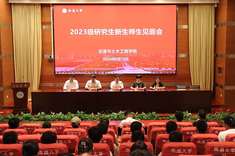 会议在雄壮的国歌声中拉开帷幕。施佺对学院57名新同学的到来表示热烈欢迎和诚挚问候,简要介绍了南通大学的发展概况和研究生教育发展历程。他向全体2023级研究生提出三点希望:一是要坚守初心,做一个志存高远的人,用青春热血回应祖国的召唤、人民的需要,为交通强国、建造强国建设贡献自己的力量;二是要博学慎思,做一个知行合一的人,在研究生阶段的学习中更加注重独立思考、学用结合,更加注重学有所悟、用有所得;三是要勇于创新,做一个综合发展的人,面对前人的科研成果既需要保持谦逊的心态,也需要培养批判性思维,在“巨人”的肩膀上努力前行。