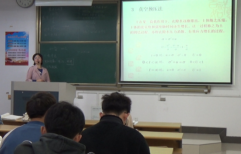 yl23455永利集团“课程思政主题活动月”,各系室开展公共基础课、专业教育课、实践课等多类型课程思政教授示范课,充分发掘和运用各学科蕴含的思想政治教育资源,实现“显性教育”与“隐性教育”的有机结合,以点带面营造育人氛围。11月29日上午,土木工程系教师孙召花副教授主讲的土力学与基础工程课程示范课在啬园校区3号教学楼509教室举行,授课内容为地基处理的排水固结法。学院教职工参加了本次活动。