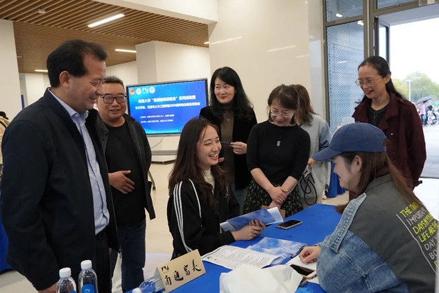 艺术学院、yl23455永利集团领导班子成员在招聘会现场与企业进行了深入交流。