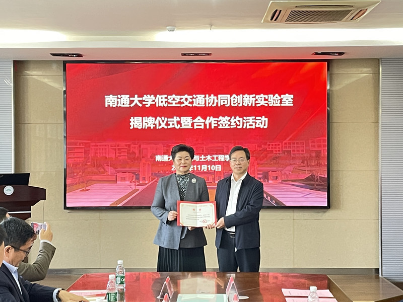 11月10日下午,南通大学低空交通协同创新实验室揭牌仪式在我校举行。校党委常委、副校长施佺,南通市综合交通运输学会理事长葛玉琴,中国联通智能城市研究院产品研发部总监杜忠岩,北京智网易联科技有限公司董事长吴学军,南通市无人机行业协会会长冯卫东等出席活动。